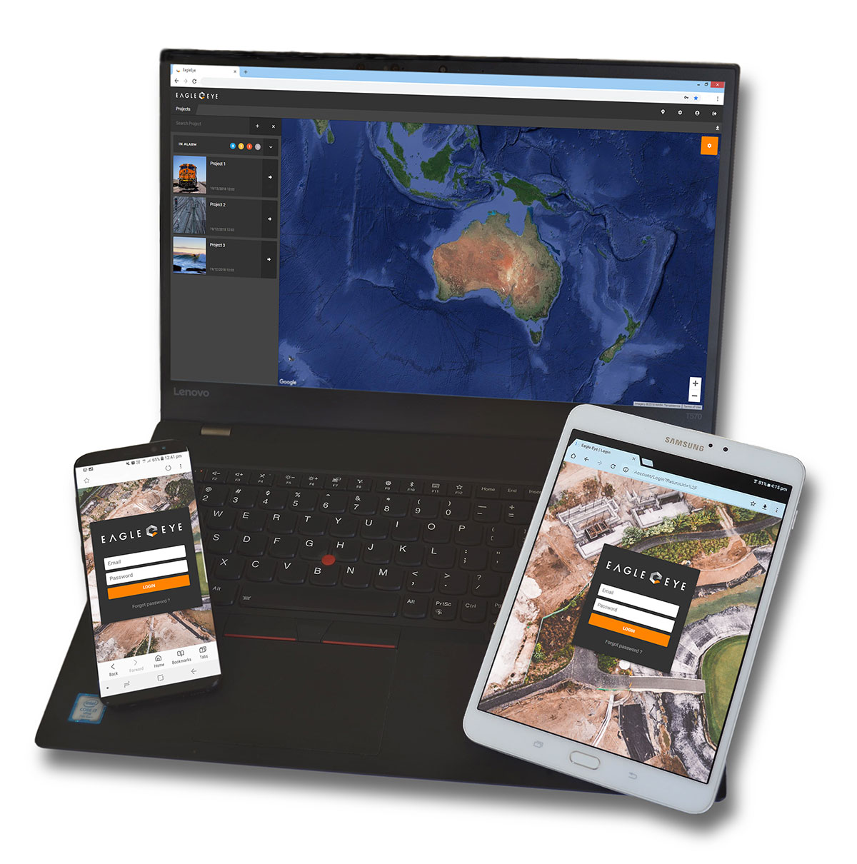 with our mapping interface. View your site with aerial imagery or CAD overlays and live status information displayed for your sensors. Eagle-Eye provides a 24-hour automated